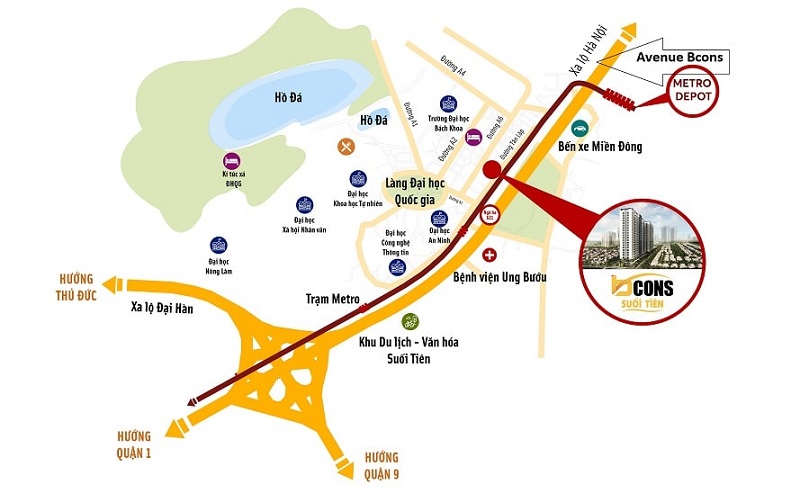 Bcons Avenue được trang bị những tiện ích hiện đại và không gian xanh rộng lớn, mang đến một môi trường sống hấp dẫn và thoải mái cho cư dân với các tiện ích nổi bật như: công viên vui chơi giải trí và khu vui chơi dành cho thiếu nhi, hồ bơi vô cực, trung tâm thương mại, siêu thị, nhà hàng, khu tiệc nướng…