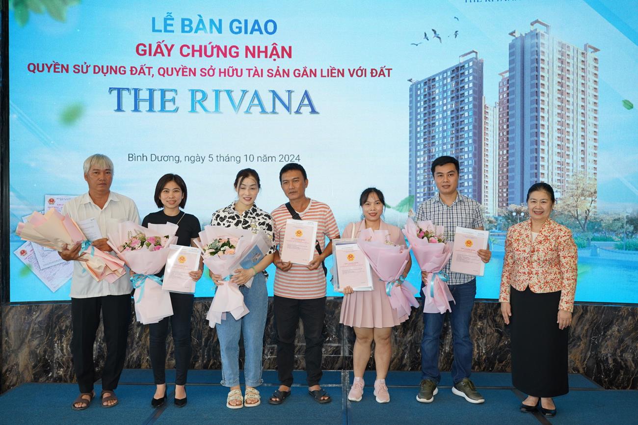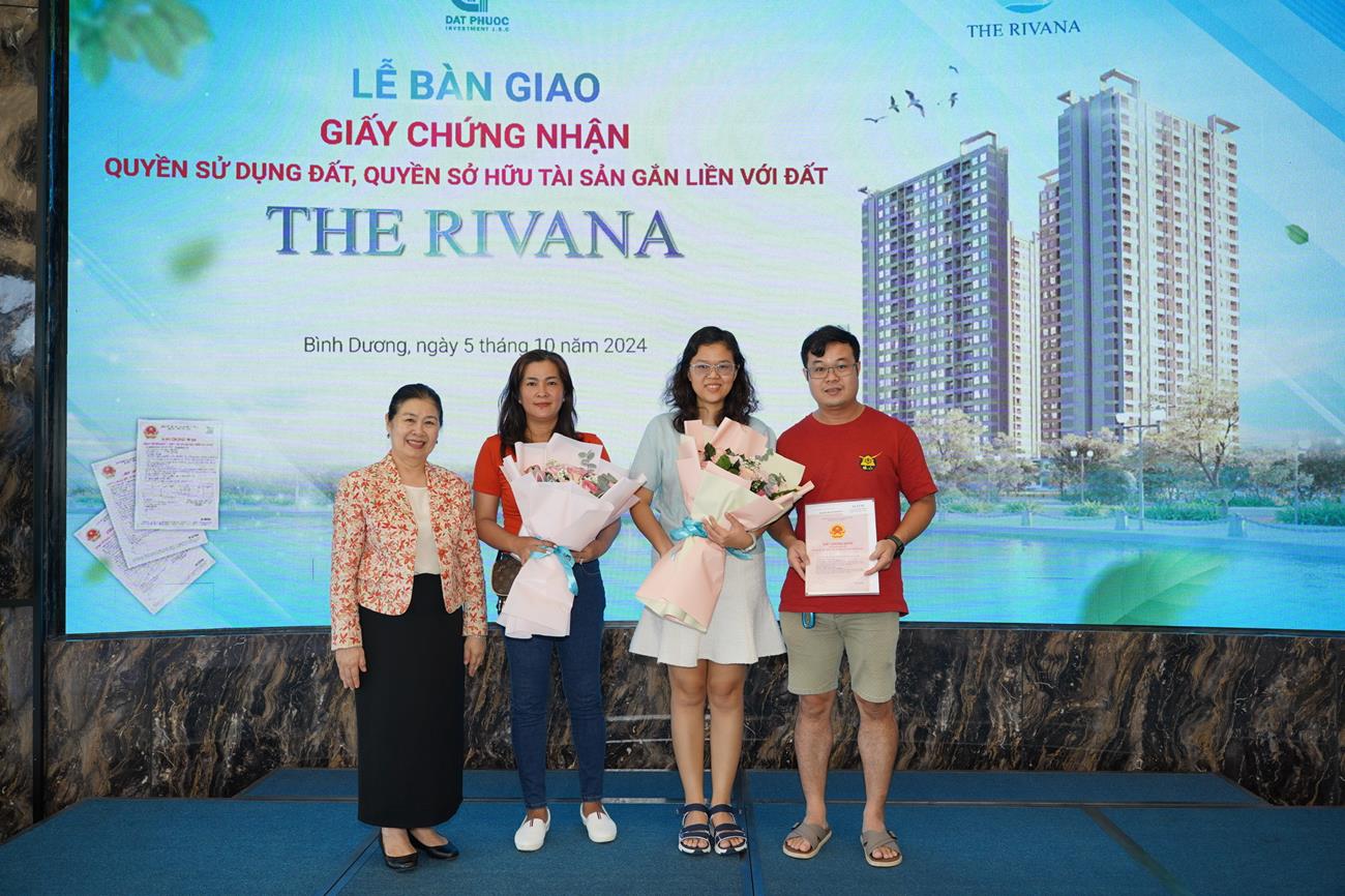 5 Tháng 10/2024 vừa qua, Chủ đầu tư - Công ty Cổ phần đầu Đạt Phước đã tiến hành bàn giao Giấy chứng nhận quyền sử dụng đất (GCN QSDĐ), quyền sở hữu tài sản và nhà ở gắn liền với đất (sổ hồng) cho cư dân The Rivana (thành phố Thuận An, tỉnh Bình Dương).