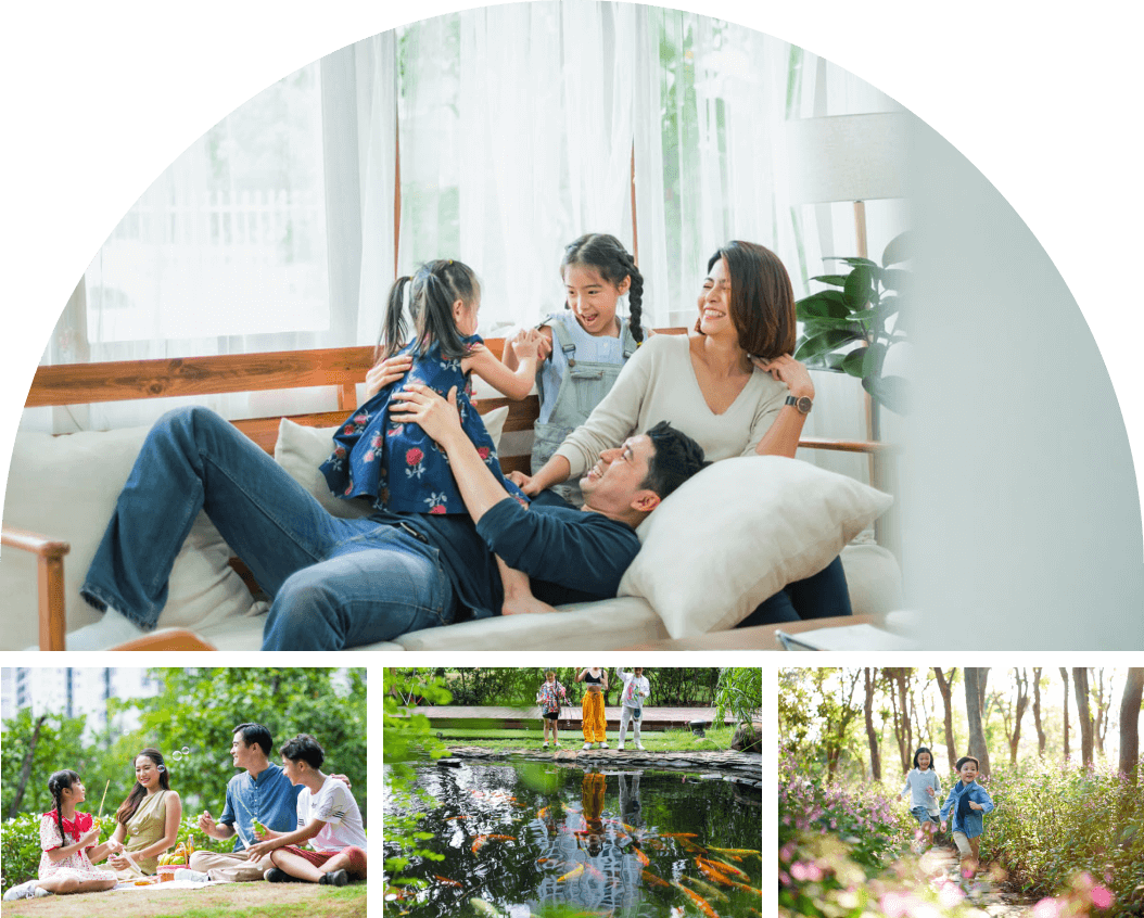 Kết nối thiên nhiên và gia đình với Nhà trên cây, đường chạy bộ, sân chơi trẻ em, khu vực BBQ, cầu ngắm hoàng hôn, khu vực vui chơi ngoài trời.