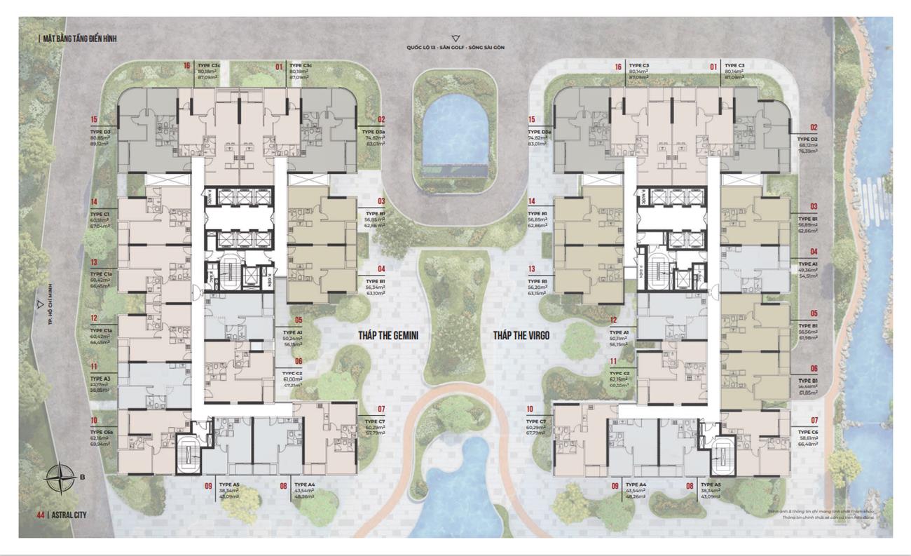 + 31 căn 1PN 1WC diện tích 45 – 55m2+ 159 căn 2PN 1WC diện tích 62m2 + 82 căn 2PN 2WC diện tích từ 67 – 87m2 + 39 căn 3PN diện tích 80m2 + 04 Sky Villas diện tích 145m2 + 11 Shophouse diện tích 156m2 |