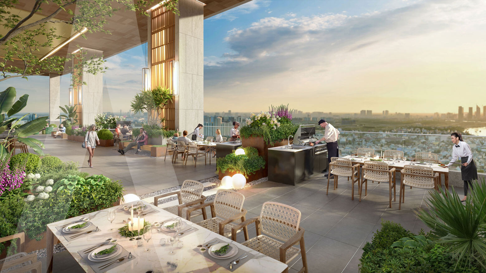 Đặc biệt, tại mỗi tòa tháp căn hộ ở toàn khộ không gian tầng 20 cũng được chủ đầu tư lựa chọn để xây dựng các tiện ích dành riêng cho cư dân của mình. Đây là lần đầu tiên tại “thủ phủ công nghiệp” đón chào một không gian thế giới tiện ích sang trọng ngay trên mỗi tầng thượng tòa nhà cùng với chuỗi không gian nghỉ dưỡng tại gia và tái tạo năng lượng đỉnh cao như: