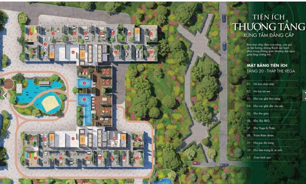 – Sáu hồ bơi chân mây trên tầng 20