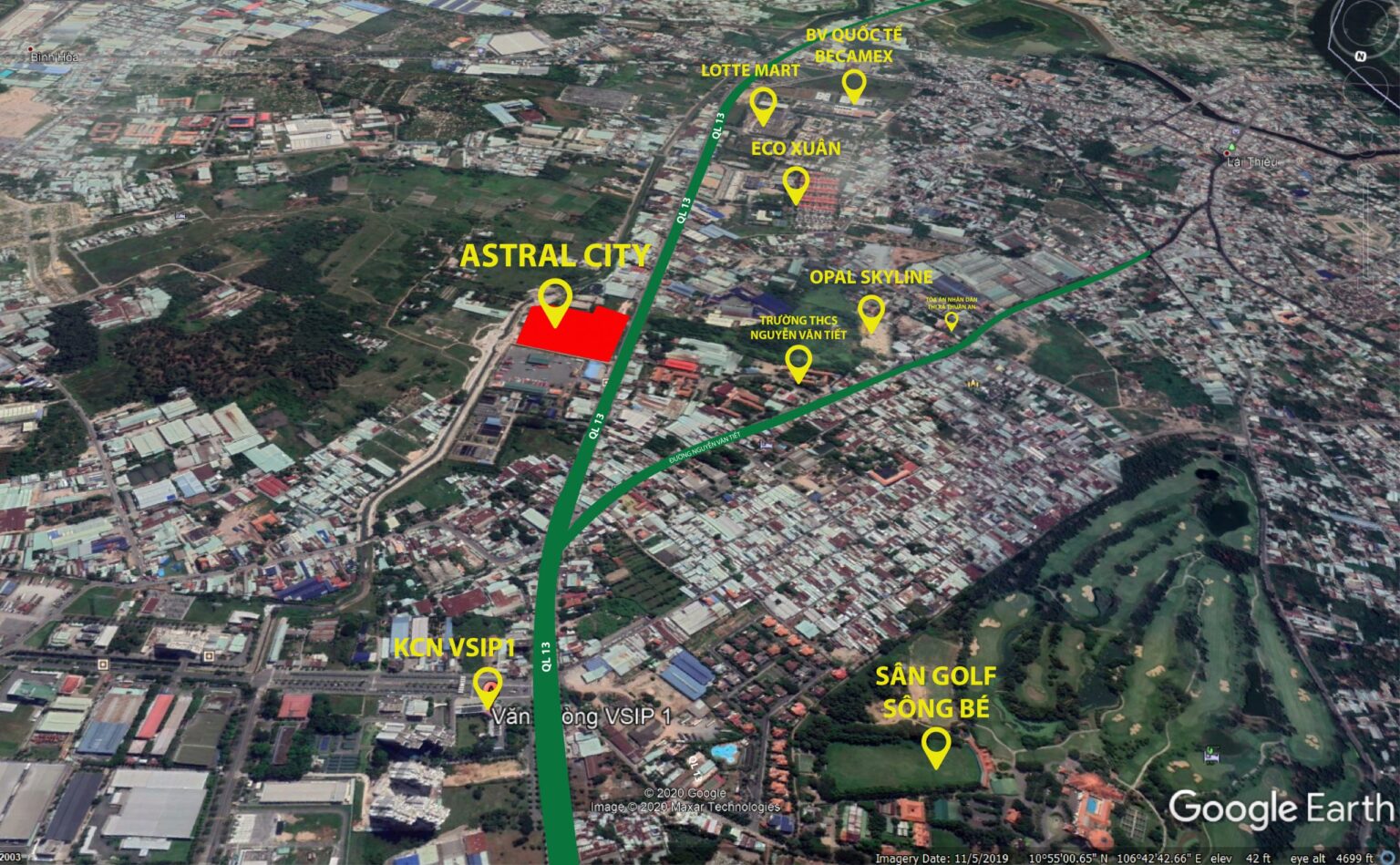 Dự án nằm trên mặt tiền đường Quốc lộ 13 (Đại lộ Bình Dương), phường Bình Hòa, thành phố Thuận An, Bình Dương, Việt Nam. Cửa ngõ phía bắc ra vào thành phố Hồ Chí Minh.