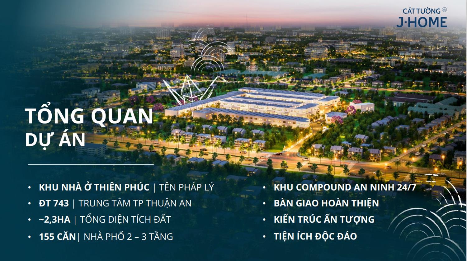 Cát Tường Group chính thức giới thiệu một dự án nhà phố phong cách Nhật Bản độc đáo tại trung tâm Thành phố Thuận An, Bình Dương. Với quy mô hơn 2,3 ha, dự án có tên Cát Tường J-Home, mang đến 120 sản phẩm nhà phố đẳng cấp, đáp ứng nhu cầu ngày càng tăng của thị trường bất động sản Bình Dương. Cát Tường J-Home được xem là một trong những dự án nổi bật nhất hiếm về dự án nhà phố trung tâm Tp Thuận An Bình Dương.