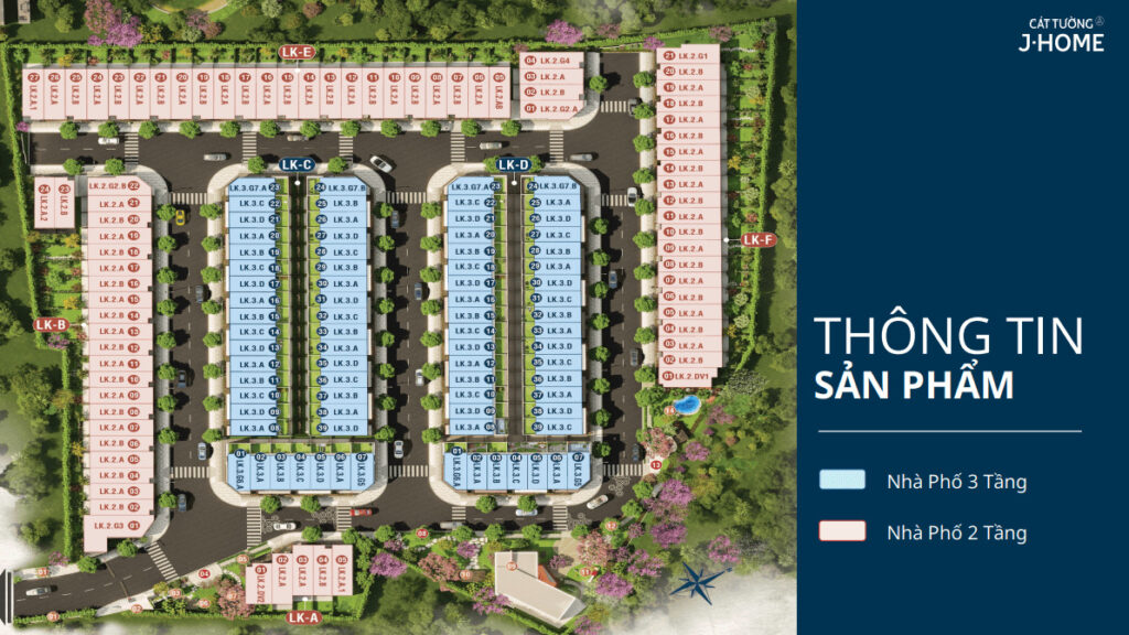 Trên quỹ đất rộng 2.3ha, dự án Cát Tường J-Home được quy hoạch gồm 150 sản phẩm nhà phố với 2 mẫu: 1 trệt 1 lầu và 1 trệt 2 lầu, diện tích đất từ 68 – 100m2, được thiết kế theo phong cách Nhật Bản.