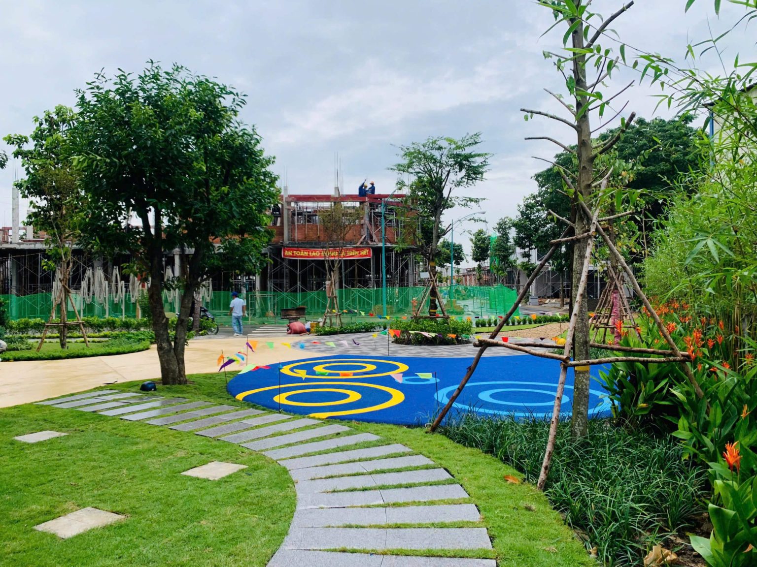 5. Tiến độ xây dựng Cát Tường được đẩy nhanh với hạ tầng cơ sở đã hoàn thiện, bao gồm hệ thống thoát nước, cây xanh, đèn đường, và việc trải nhựa đường nội khu.