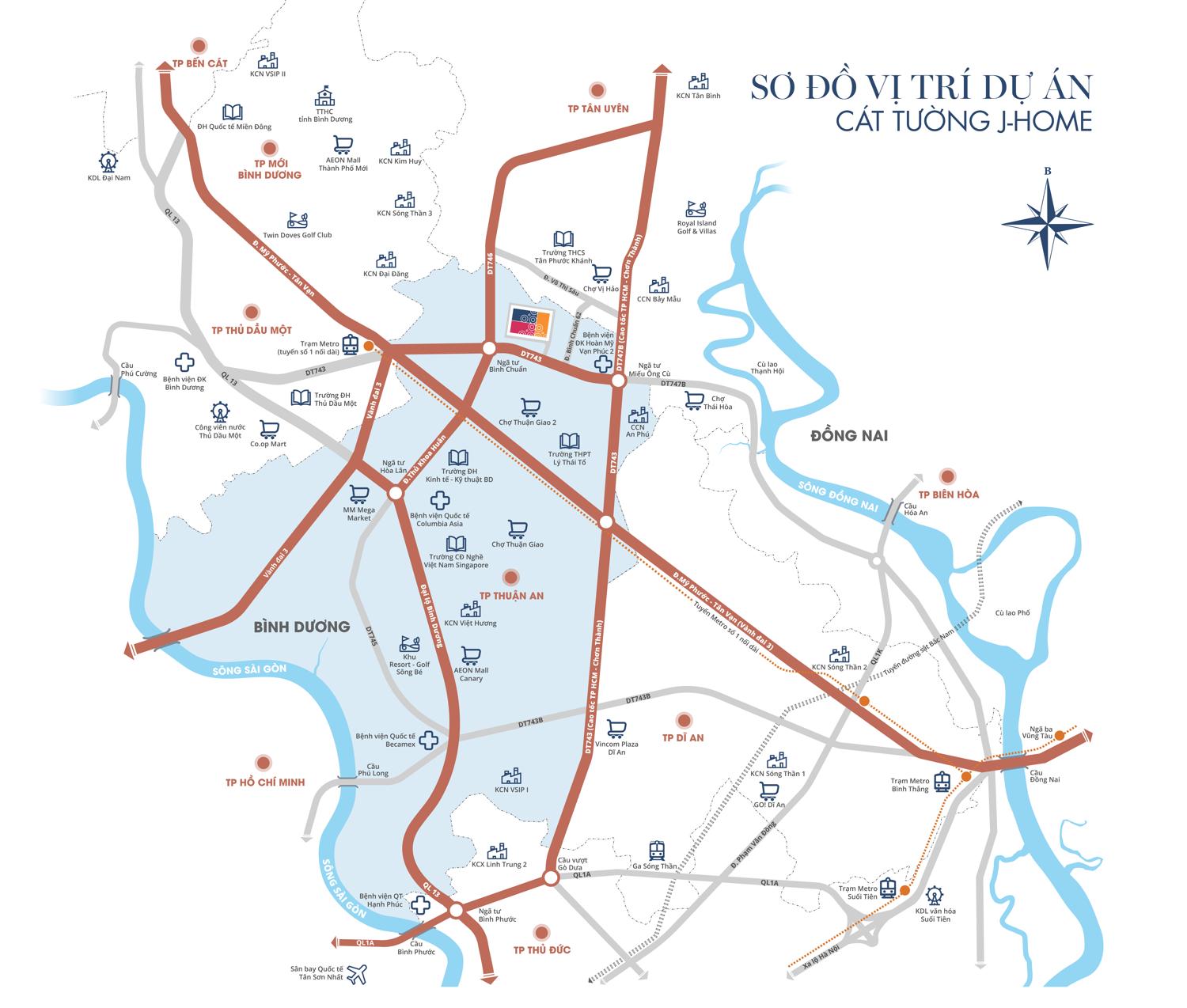 Cát Tường J-Home nằm trên đường DT743, phường Bình Chuẩn, TP Thuận An tâm điểm giữa 4 thành phố lớn gồm: Biên Hòa, Dĩ An, Tân Uyên, TP.HCM mở ra cơ hội giao thương, kết nối và phát triển vượt bậc.