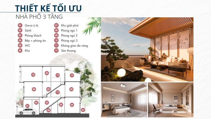 Những ngôi nhà tại Cát Tường J-Home được thiết kế theo phong cách tối giản và thanh lịch, đặc trưng của kiến trúc Nhật Bản. Mỗi căn nhà đều đón ánh sáng tự nhiên và gió trời, mang lại không gian sống yên bình và gần gũi với thiên nhiên. Đây là nơi cư dân có thể tìm thấy sự an yên trong từng góc nhìn mà vẫn đầy đủ tiện nghi hiện đại.