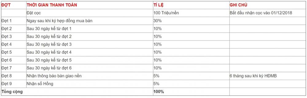 - Dự kiến bàn giao nền: 2019