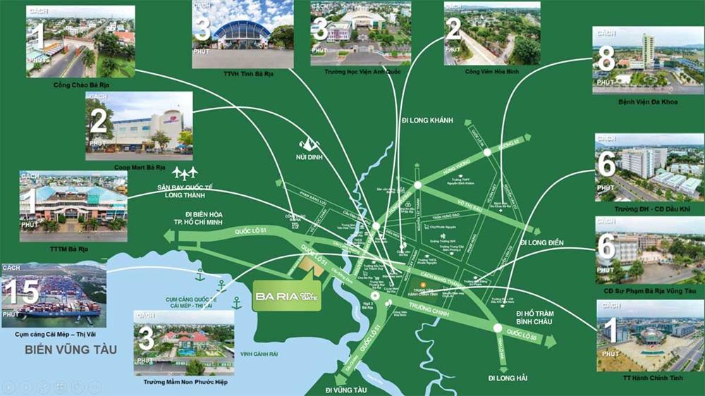Bà Rịa City Gate là một dự án đất nền đang được đánh giá cực kì cao tại TP.Bà Rịa. Sỡ hữu vị trí hiếm có ngay trung tâm thành phố. Khổng chỉ vậy điểm làm nên sự giá trị của dự án chính là nằm ngay cạnh khu cảng Cái Mép Thị Vải. Được mệnh danh là cửa ngỏ của toàn quốc mở ra cánh cửa giao thương quốc tế.