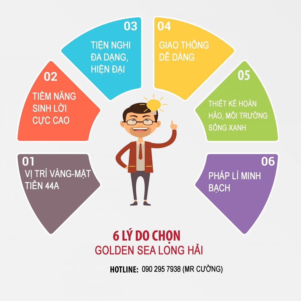 Dự án Golden Sea Long Hải có quy mô lên đến 44Ha, tổng cộng hơn 1200 lô đất nền. Đang triển khai giai đoạn 2 trên 3 giai đoạn dự án đất nền. Mặt bằng trên tuyến đường 44A hay còn gọi là tuyến đường ven biển. Tuyến đường chạy dọc theo bờ biển Vũng Tàu nơi toạ lạc của những trung tâm nghĩ dưỡng, du lịch xa hoa nhất Bà Rịa Vũng Tàu. Việc đón đầu đường đi đến các khu du lịch nổi tiếng và có vị trí ngay khu dân cư đông đúc. Đã và đang nhận được rất nhiều sự quan tâm, đầu tư của các nhà đầu tư tinh anh.