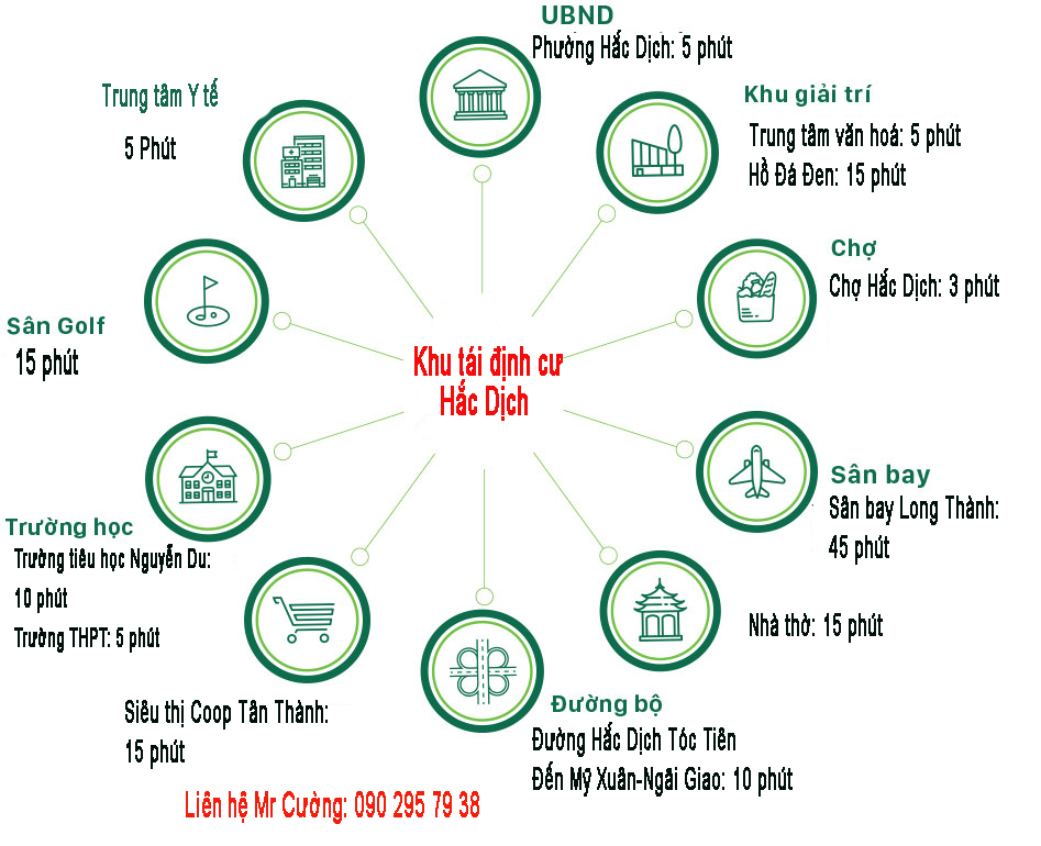 Điều tạo nên điểm giá trị của đất tái định cư Hắc Dịch đó chính là vị trí đắc địa ngay trung tâm Hắc Dịch. Xung quanh dự án có đầu đủ các loại công trình tiện ích. Từ UBND phường Hắc Dịch, Chợ, Trường học. Ngoài việc tạo lạc tạo khu dân cư đông đúc, thì số lượng dân cư mới đến cũng ngày càng tăng. Giải thích cho việc này có thể kể đến là do khu tái định cư Hắc Dịch nằm liền kề các trọng điểm lớn của toàn tỉnh Bà Rịa Vũng Tàu. Như cụm CNTT Hắc Dịch, KCN Mỹ Xuân B, KCN Sonadezi, các khu du lịch hồ Châu Pha, hồ Đá Đen,.. Thu hút rất lớn lượng công nhân, nhân viên, kĩ sư đến nơi đây.