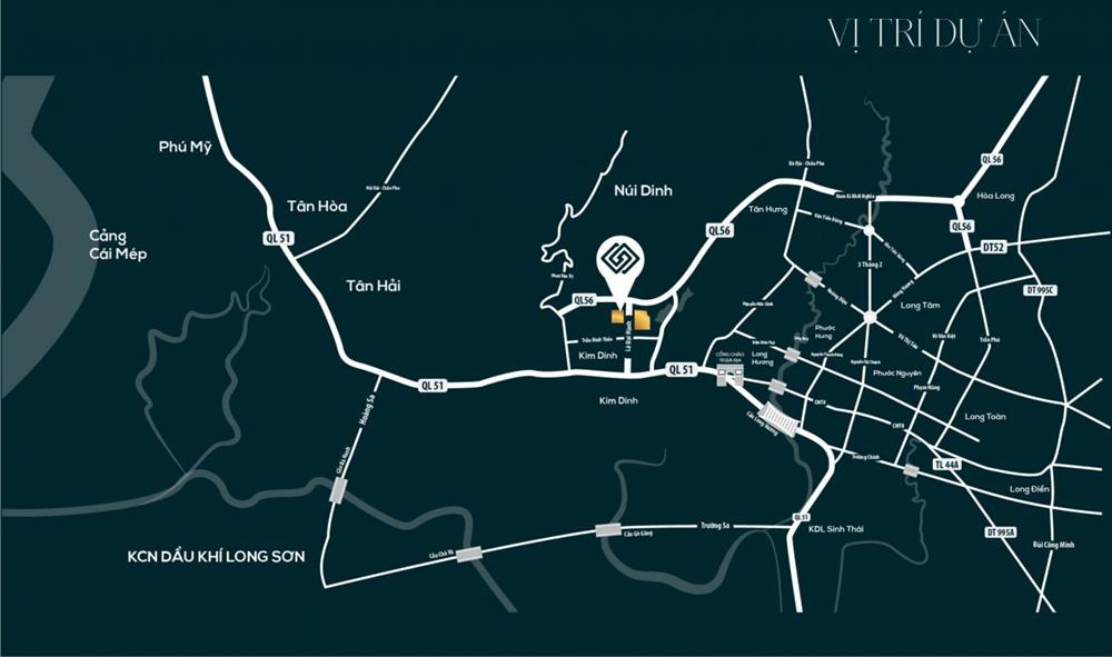 Dự án Golden Gate có vị trí tại ngã ba giao giữa đường Lê Đại Hành và quốc lộ 56. Là một quốc lộ quan trọng chắc chắn từ dự án có thể thông qua quốc lộ 56 đi đến các khu vực quan trọng dễ dàng. Cũng là một con đường đem đến rất nhiều cơ hội đầu tư kinh doanh. Bên cạnh chỉ cách 5 phút di chuyển là Hồ Đá Xanh và chân núi Dinh. Hai địa danh du lịch sinh thái nổi tiếng, thu hút rất nhiều du khách hàng năm.