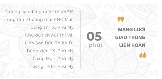 Là trung tâm của thị xã Phú Mỹ. Cư dân dự án có thể sử dụng các tiện ích sẵn có trong vòng bán kính 1km :