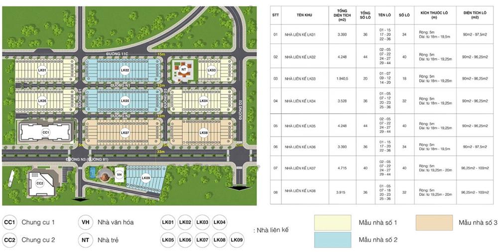 319 nền nhà liền kề, 2 toà nhà chung cư có diện tích 39000 m2 |