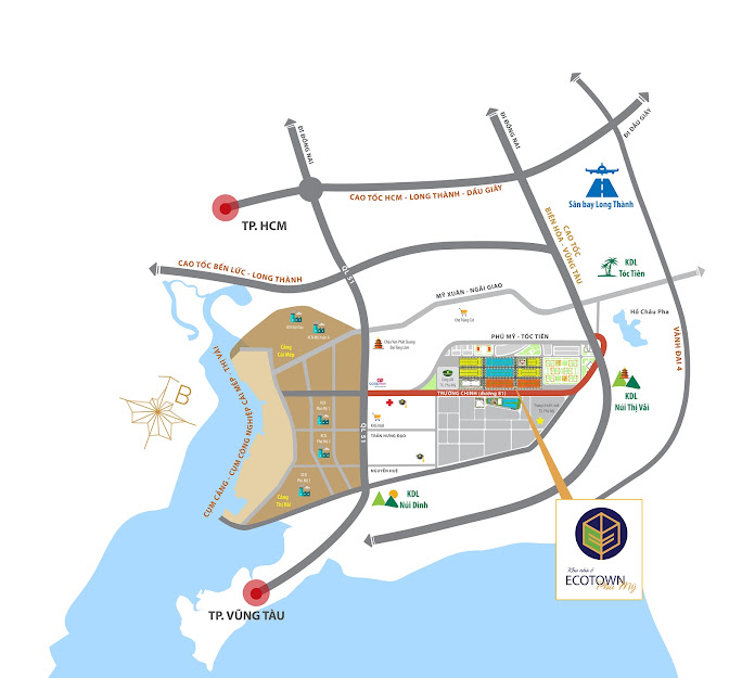 Điểm nổi bật dự án Ecotown Phú Mỹ tọa lạc ngay thủ phủ của khu công nghiệp và cảng biển: KCN Phú Mỹ 1,2,3, KCN Hắc Dịch, KCN Tóc Tiên, KCN Mỹ Xuân, KCN Sonadezi, Cảng Cái Mép Thị Vải. Vì thế lượng công nhân chuyên gia ở đây rất đông. Sẽ làm cho nhu cầu bất động sản ở và đầu tư cho thuê, buôn bán, vui chơi giải trí sẽ cực kỳ lớn. Làm cho bất động sản Phú Mỹ ngày càng khan hiếm. Đây là yếu tố làm cho giá đất Phú Mỹ ngày càng tăng. Đặc biệt ở đây có cảng biển lớn nhất Việt Nam và tóp 15 của thế giới, sẽ góp phần phát triển kinh tế của cả vùng kinh tế phía Nam