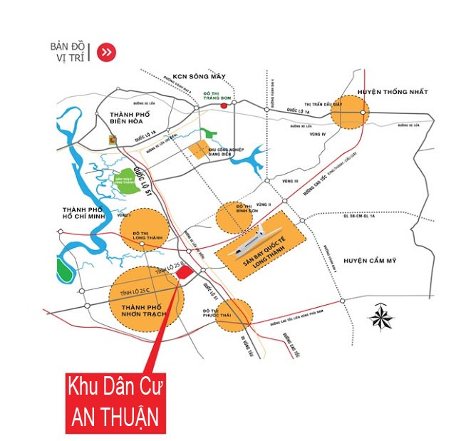 Dự án Khu dân cư An Thuận có vị trí cửa ngõ đi vào sân bay Long Thành. Dự án này còn nằm ở giao điểm của 2 con đường Quốc lộ 51 và Tỉnh lộ 25B có kết nối giao thông cực kỳ thuận lợi với các khu vực khác.