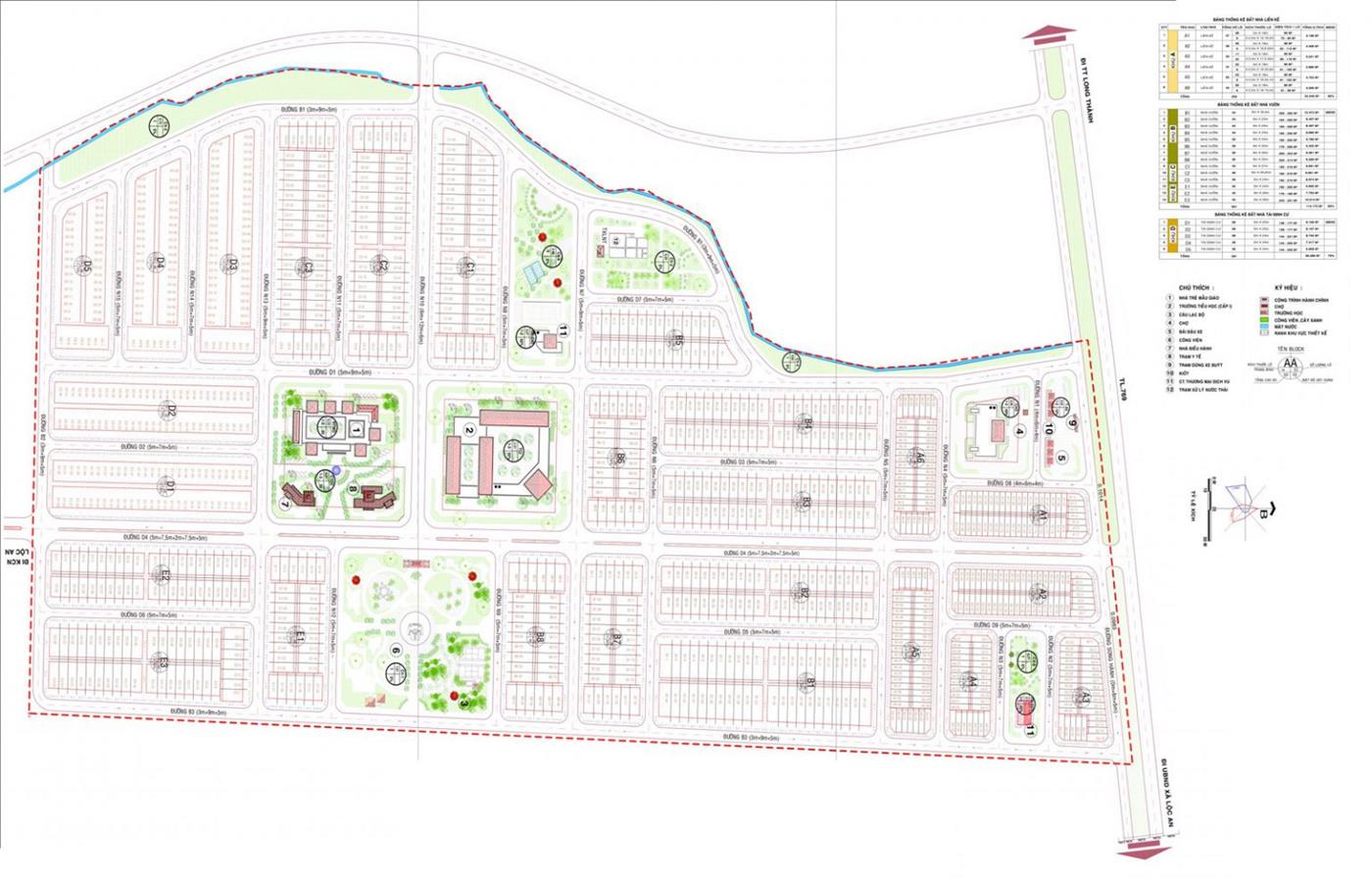 Mặt bằng dự án D2D Lộc An Long Thành với tổng diện tích lên đến 41,1 ha. Với 19,7ha xây dựng nhà ở và phần còn lại của công trình công cộng, đường xá. Các khu vực được phân bố một cách rõ ràng và hợp lí. Trung tâm là công viên, khu mua sắm, giúp mọi vị trí trong dự án đều di chuyển dễ dàng. Các phân khu thì có hệ thống đường nhựa rộng từ 10m, để dễ dàng liên kết với nhau.