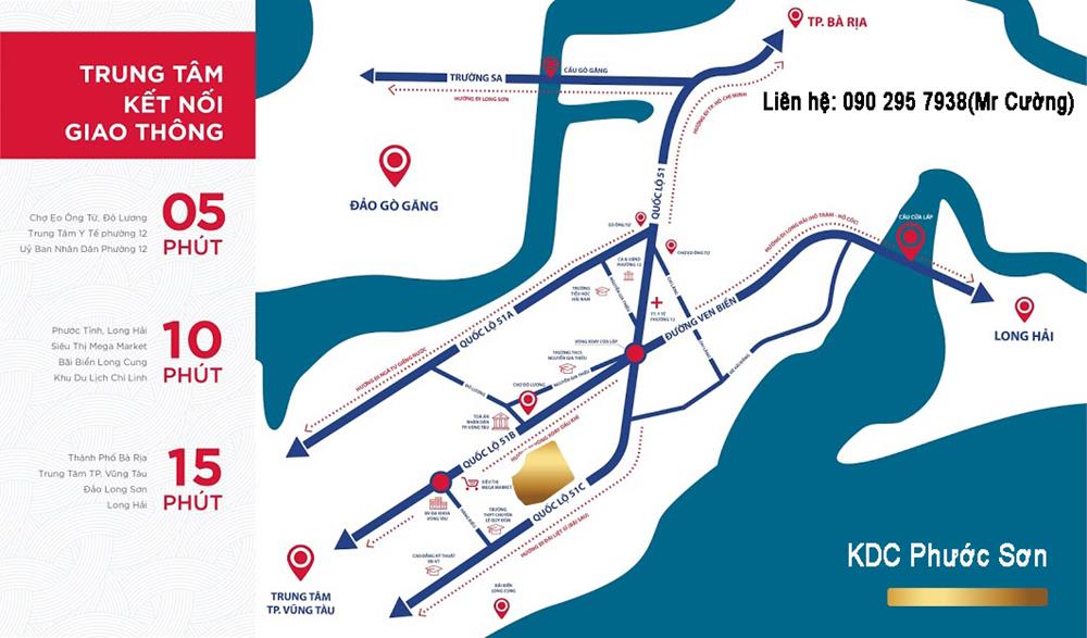 Đất khu dân cư Phước Sơn có hai mặt tiền quan trọng 51B và 51C. Là nhánh của quốc lộ huyết mạch Vũng Tàu. Từ dự án dễ dàng truy cập đến những con đường quan trọng. Kể đến là quốc lộ 56, Cao tốc Bến Lức Long Thành, đường ven biển, Cao tốc HCM Dầu Giây,.. Để qua đó đến những trung tâm kinh tế lớn toàn vùng, hay là những thành phố lớn khác. Phục vụ rất tốt cho hoạt động giao thông, và kinh doanh. Đẩy mạnh giá trị dự án lên tầm cao mới, sinh lợi nhuận dễ dàng.