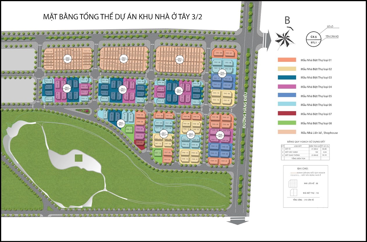 210 căn gồm nhà liền kề, biệt thự. Trong đó có: