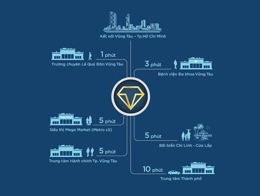 Đầu tiên là vị trí cực kì quý giá trong thời điểm quỹ đất của TP.Vũng Tàu đang thu hẹp. Vị trí đắc địa gần các tiện ích công sẽ là nền tảng chắc chắn cho sự tăng giá sau này. Bởi lẽ lịch sử chỉ ra các sản phẩm BĐS nằm cận kề dịch vụ công luôn phát triển mạnh mẽ
