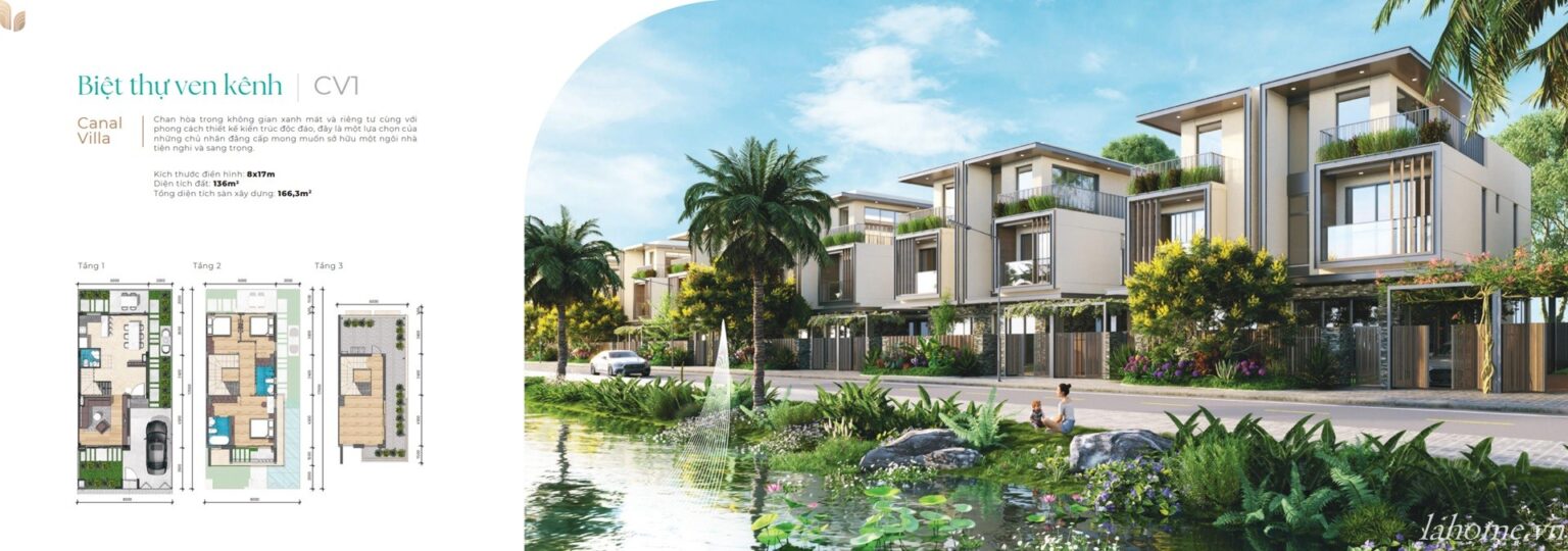 Nhà phố liền kề: 80 – 90m Shophouse (LG 18): 90m Shophouse (LG 60m): 90m Biệt thự view kênh: 144 – 162m Shopvilla: Căn góc |