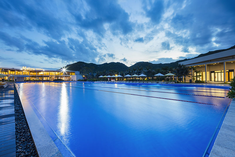 Diện tích mặt nước gần 2.600 m2, bao gồm khu hồ chuyên nghiệp, hồ bơi thông thường, khu trẻ em. Đáp ứng mọi lứa tuổi, đối tượng tại đây. Hệ thống sàn gỗ, ghế phơi nắng sang trọng mang đến làn da rám nắng khoẻ mạnh đầy sức sống. Chuỗi 6 nhà liều tuyệt đẹp cũng là một điểm nhấn quan trọng.