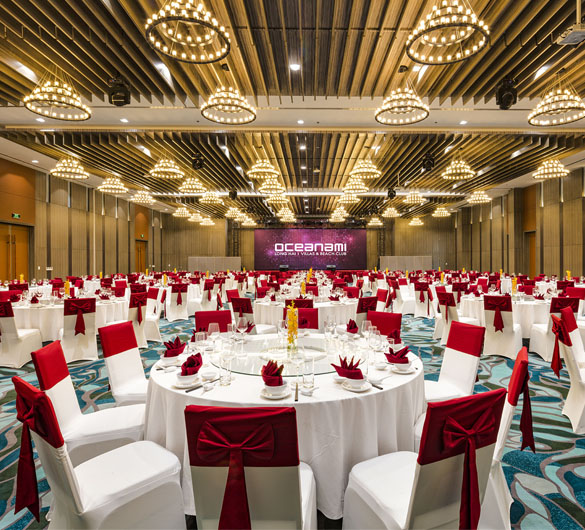 Với tổng diện tích lên tới 1.100m2 bao gồm không gian trong nhà và ngoài trời. Được kết hợp linh hoạt và hoàn hảo, Oceanami có cơ sở hạ tầng hiện đại, trang thiết bị sang trọng. Cực kì lý tưởng để phục vụ các loại hình sự kiện khác nhau. Hội nghị, sự kiện hội thảo, tiệc cưới,.. . Bao gồm một đại sảnh lớn đa chức năng, ba phòng họp cỡ vừa và một khu vực chức năng ngoài trời.