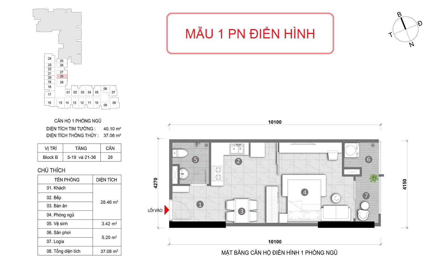 Mặt bằng căn hộ 1 phòng ngủ