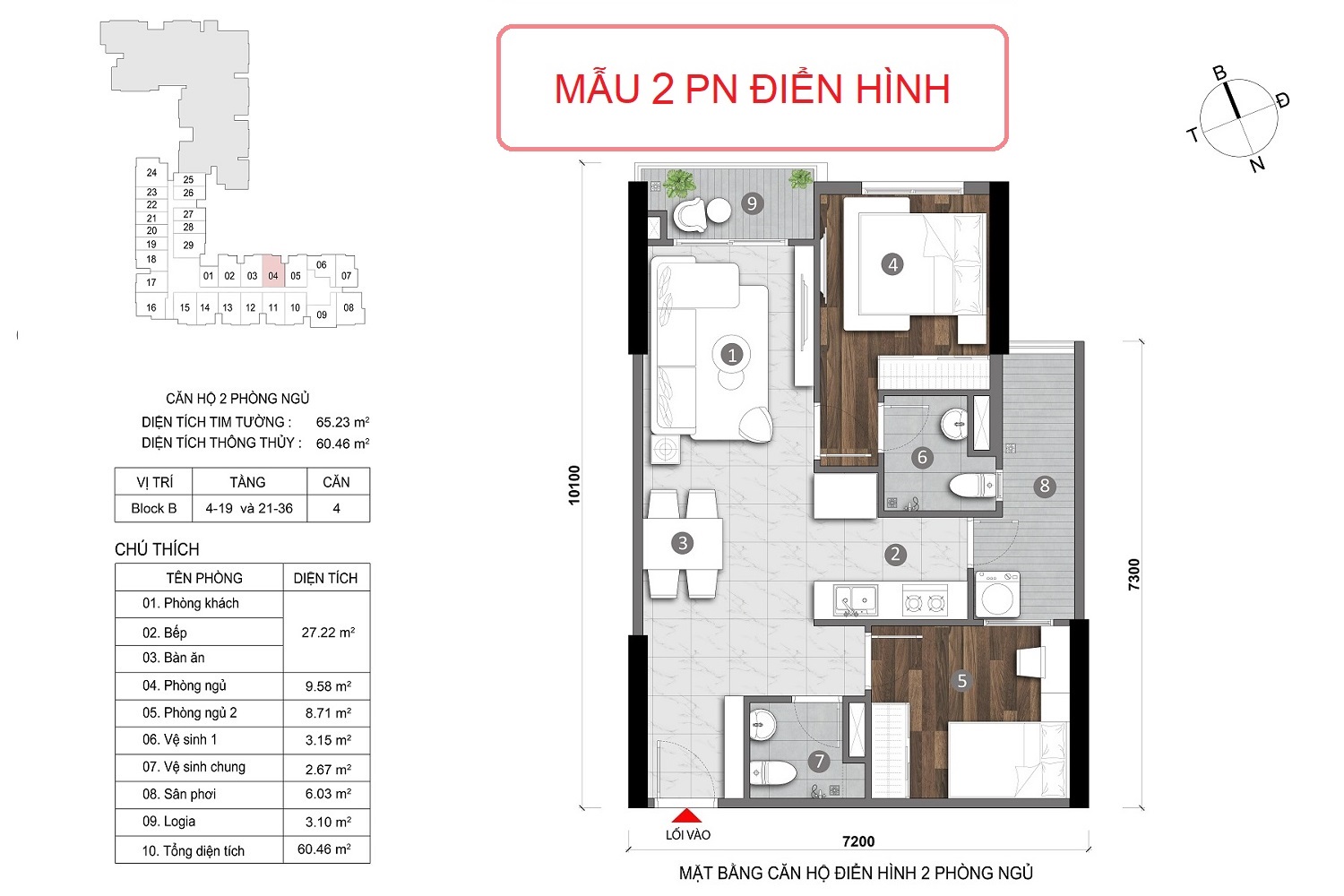 | 2 phong ngủ | 60-66m2 |