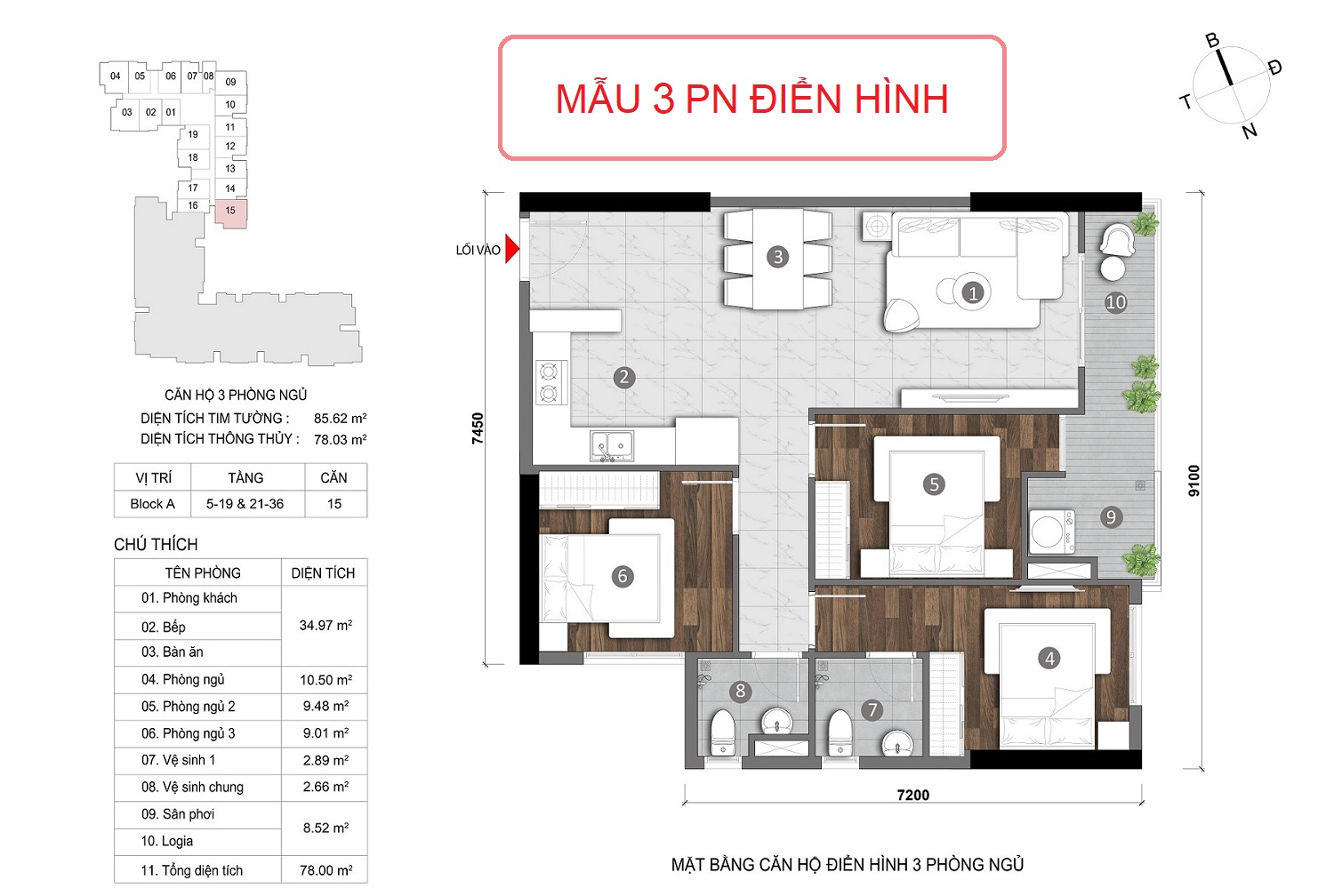 👉 3PN diện tích 85m2 giá 2.790.000.000 - 3.350.000.000