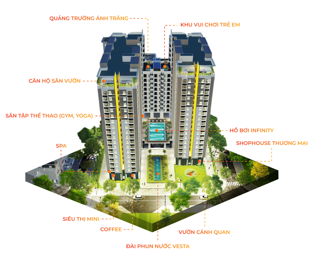 - Tiện ích nội khu và ngoại khu đa dạng, đẳng cấp giúp cho cư dân có thể sử dụng một cách tốt nhất, đầy đủ nhất.