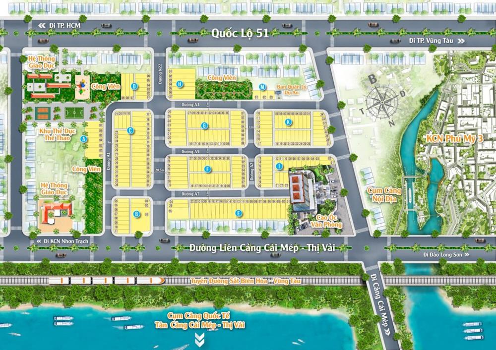 Có mặt tiền là quốc lộ 51, không chỉ là một lợi thế giao thương tại nội vùng. Đây còn là một quốc lộ chạy xuyên suốt cả tỉnh Bà Rịa Vũng Tàu. Nối với các cao tốc, quốc lộ khác để đi ra các tỉnh thành, thành phố lớn. Thông qua quốc lộ 51 để dến được sân Bay Long Thành. Đến các thành phố trung tâm nội tỉnh qua quốc lộ 51 và 55. Đặc biệt đến HCM với thời gian cực ngắn qua cao tốc Long Thành Dầu Giây.
