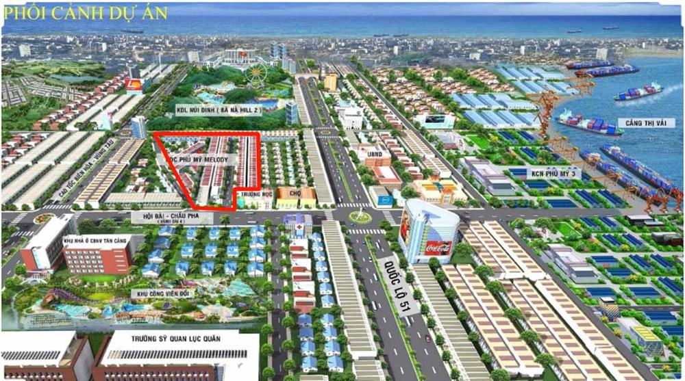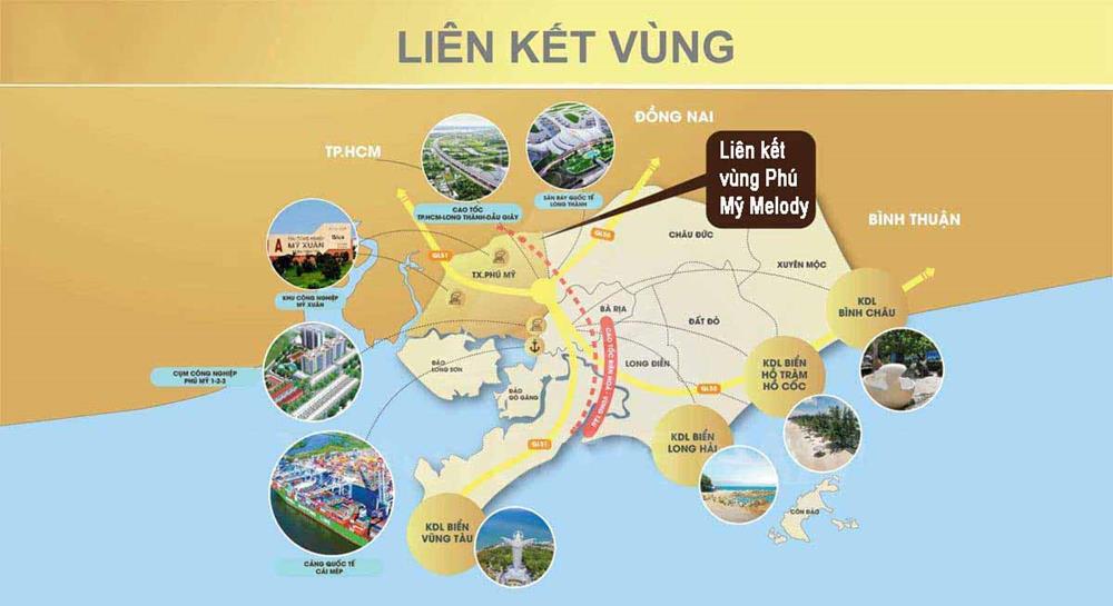 Phú Mỹ Melody sỡ hữu vị trí tuyệt đẹp ngay tại ngã ba Quốc lộ 51 và Hội Bài Châu Pha. Đây là nơi tập trung những công trình, khu kinh tế trọng điểm. Của cả tỉnh Bà Rịa Vũng Tàu chứ không chỉ Phú Mỹ. Nổi trội nhất có lẽ là khu cảng quốc tế Cái Mép, cảng nước sâu đứng thứ 19 toàn thế giới. Các khu công nghiệp có quy mô hàng trăm ha như: KCN Phú Mỹ 3, KCN Phú Mỹ 1,..
