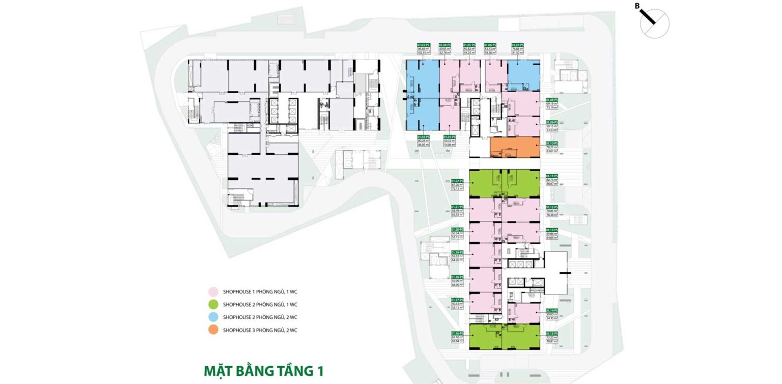 1.319 Căn hộ: – Căn hộ thông thường: 1.141 căn – Căn hộ có lửng: 178 căn Số lượng Officetel: 226 căn officetel Số lượng shophouse: 22 căn shophouse Diện tích sản phẩm: – Căn hộ: 54m2 – 60m2 – 64m2 – 70m2 ((1PN – 1WC; 2PN – 1WC; 2PN – 2 WC) & Căn hộ Duplex: cao 5,2m) – Officetel: 35 – 45m2 – Shophouse: 100 – 130m2 |