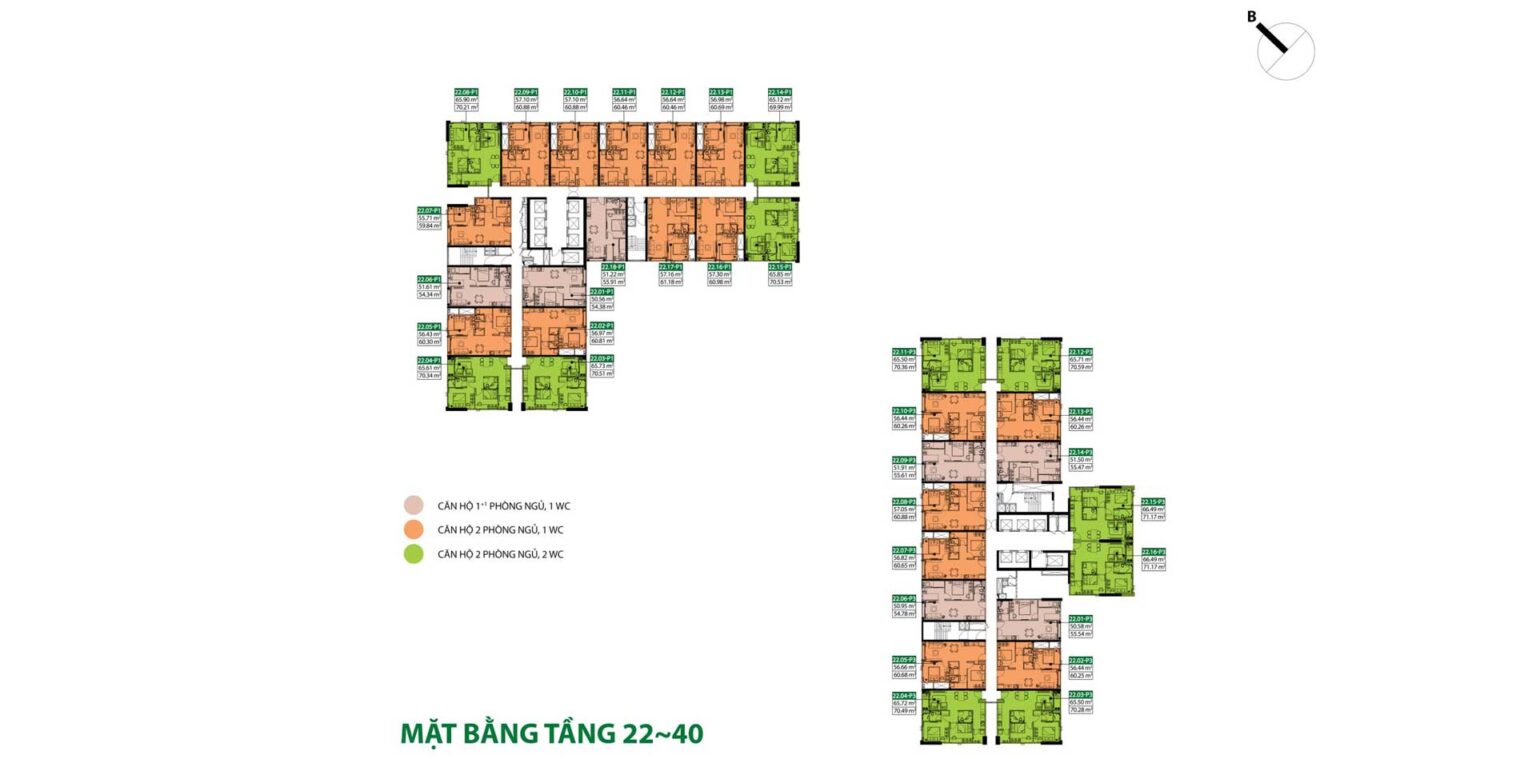 | Căn 2 PN/ 2WC | 70m2 | 3,2 tỷ/ căn |