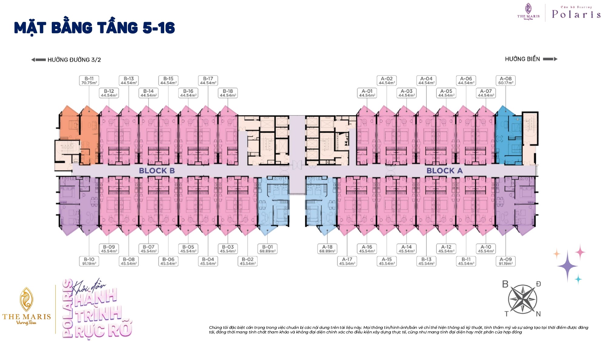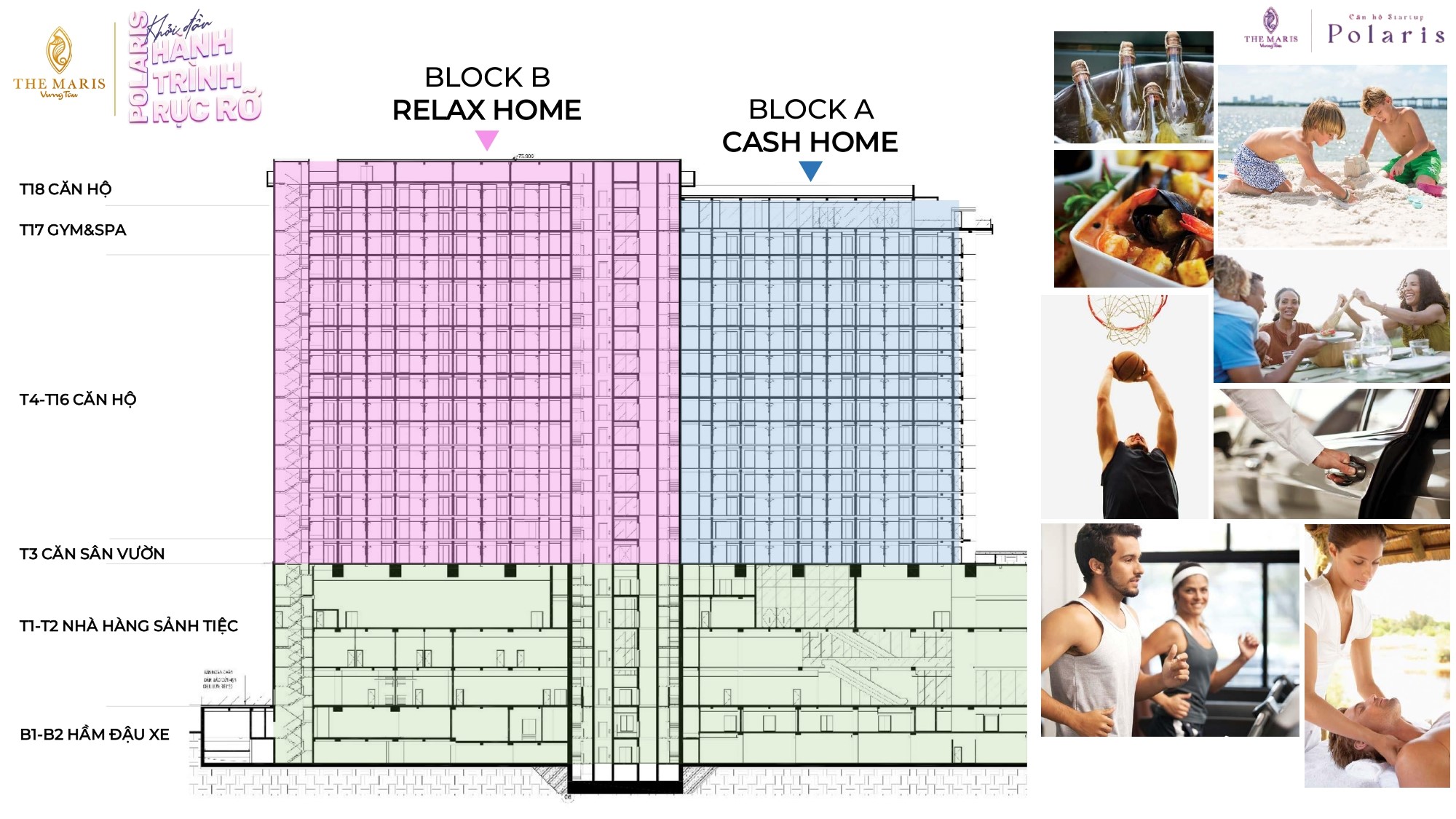 Polaris Vũng Tàu được phân chia thành hai block để phục vụ hai nhóm khách hàng khác nhau:
