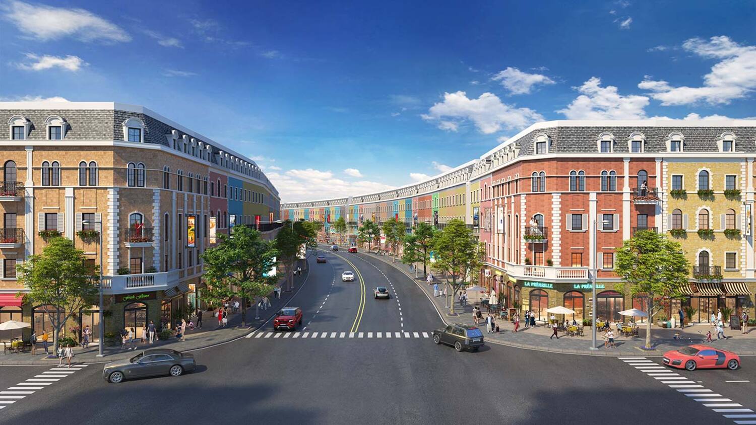Đặc biệt, các sản phẩm nhà phố và shophouse của dự án được bố trí dọc theo các trục giao thông nội khu có lộ giới rộng rãi từ 11m – 50m thuận lợi phát triển kinh doanh thương mại.