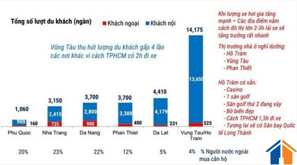 Một yếu tố khác nữa là du lịch giải trí đang có cực kì nhiều cơ hội phát triển. Trong khi Vũng Tàu vốn là một địa phương có nền du lịch lâu năm. Theo thống kê trong nhưng khu vực lân cận, Vũng Tàu luôn là nơi có lượng du khách ghé thăm cao nhất.