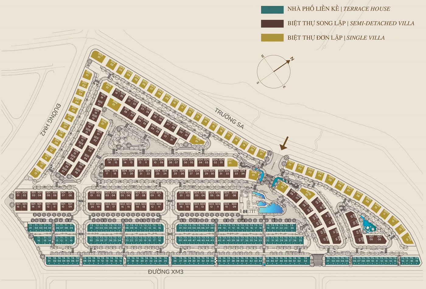 Mặt bằng dự án Sycamore Bình Dương được phân chia thành 7 phân khu đa dạng. Trong đó, có 2 phân khu bao gồm nhà phố liền kề và biệt thự, cùng với 4 phân khu chung cư cao 24 tầng. Ngoài ra, còn có 1 phân khu khác gồm các nhà ở cao 10 tầng, bao gồm nhiều loại hình sản phẩm và diện tích như căn hộ, biệt thự song lập và nhà phố liền kề.