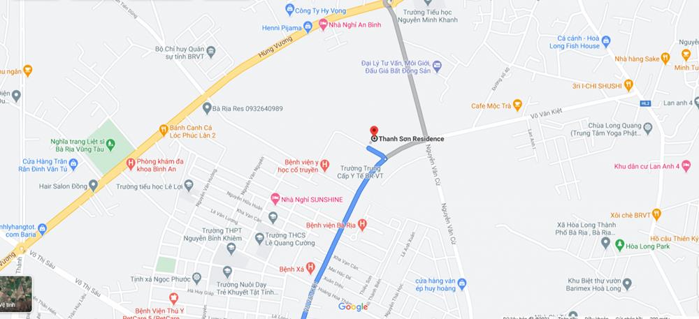 - Thanh Sơn Residence Bà Rịa có vị trí cực kỳ thuận lợi là mặt tiền đường Võ Văn Kiệt và Phan Đình Phùng sát cạnh với bệnh viện Tp Bà Rịa. Nơi quỹ đất hiếm còn lại ở trung tâm của thành phố.
