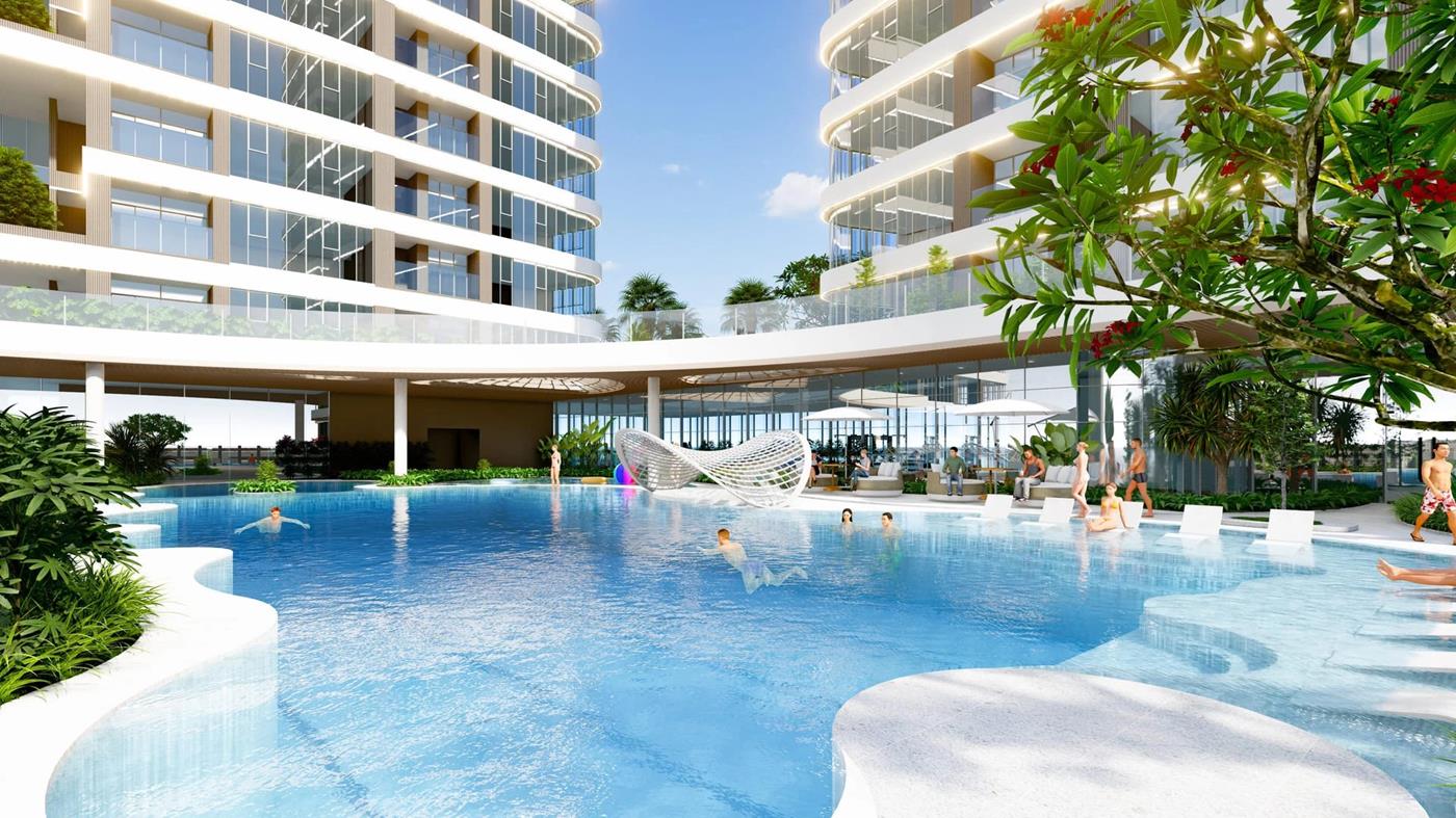 Tại tầng 6 dự án là không gian hồ bơi tràn bờ, hồ bơi ngoài trời người lớn và trẻ em, vườn nhiệt đới, các khu vực tiểu cảnh tắm nắng.