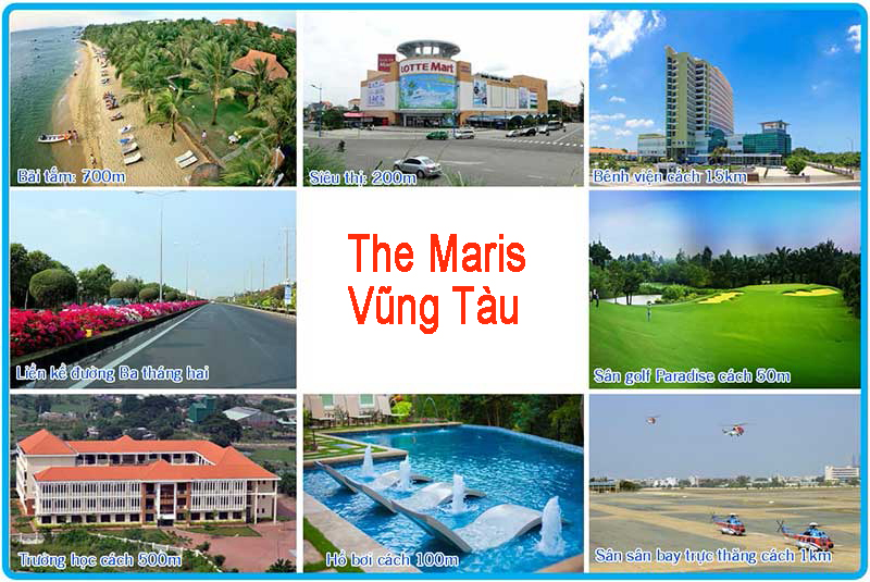 The Maris Vũng Tàu một dự án tiềm năng, tương lai khi hoàn thành sẽ là khu nghĩ dưỡng đẳng cấp. Xung quanh dự án thu hút rất nhiều công trình, dân cư cũng như tiện ích đa dạng. Ngoài những tiện ích thông thường là trường học, khua mua sắm, siêu thị,.. Đến những tiện ích sang trọng như sân golf Parsidise, bãi tắm Chí Linh, Sân bay trực thăng, khu nghĩ dưỡng Hồ Tràm,..