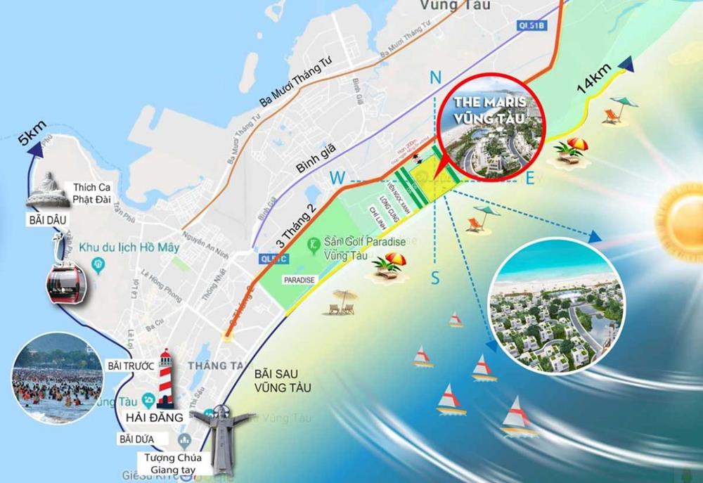Dự án The Maris có vị trí đắc địa ngay trung tâm thành phố Vũng Tàu, nằm ngay cạnh bãi biển Chí Linh. Sỡ hữu một trong những bãi biển đẹp và đa dạng hệ sinh thái nhất. Tương lai với sự đấy mạnh phát triển của tỉnh uý Vũnh Tàu. Nơi đây “Khu du lịch Chí Linh –Của Lấp” không những là khu du lịch trọng điểm. Mà sẽ còn là khu đô thị trung tầm của toàn thành phố.