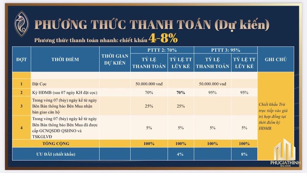 Phương thức thanh toán dự án The Maris Vũng Tàu đã có cho cả Khu Villa-Biệt thự và khu căn hộ Condotel. Với nhiều phương thức lựa chọn thanh toán, ưu đãi hấp dẫn.