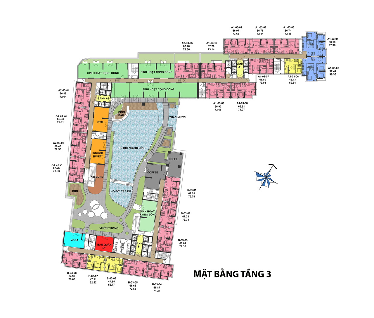 | Tiện ích | GYM, INDOOR SPORT, 4 phòng sinh hoạt cộng động lớn, hồ bơi người lớn, hồ bơi trẻ em, thác nước, 2 nhà trẻ, phòng ban quản lý, Yoga, vườn tượng, khu công viên, khu vui chơi, 2 quầy coffee,… |