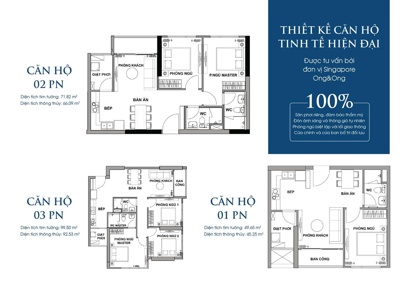 | 2 phong ngủ | 70-73m2 |