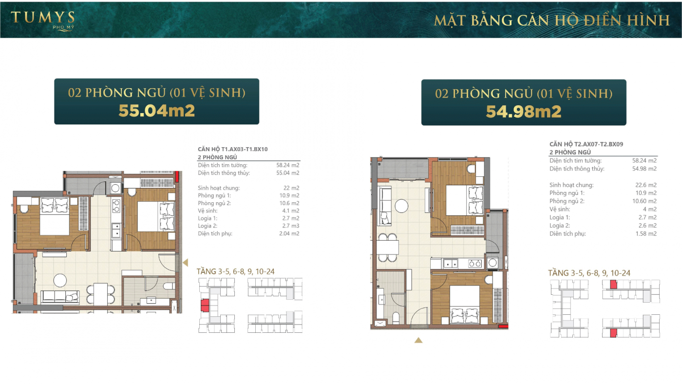 Dự án chung cư Tumys Homes thị xã Phú Mỹ cao 25 tầng với quy mô 10.500m2. Với đa dạng diện tích 1 phòng ngủ 49m2, 2 phòng ngủ 55-65m2 và 3 phòng ngủ 75-87m2. Tumys nằm ngày mặt tiền đường quốc lộ 51 thuộc phường Phú Mỹ, thị xã Phú Mỹ, tỉnh Bà Rịa Vũng Tàu. Dự án có mức giá được chào bán ra thị trường 1,5 tỷ/ căn.