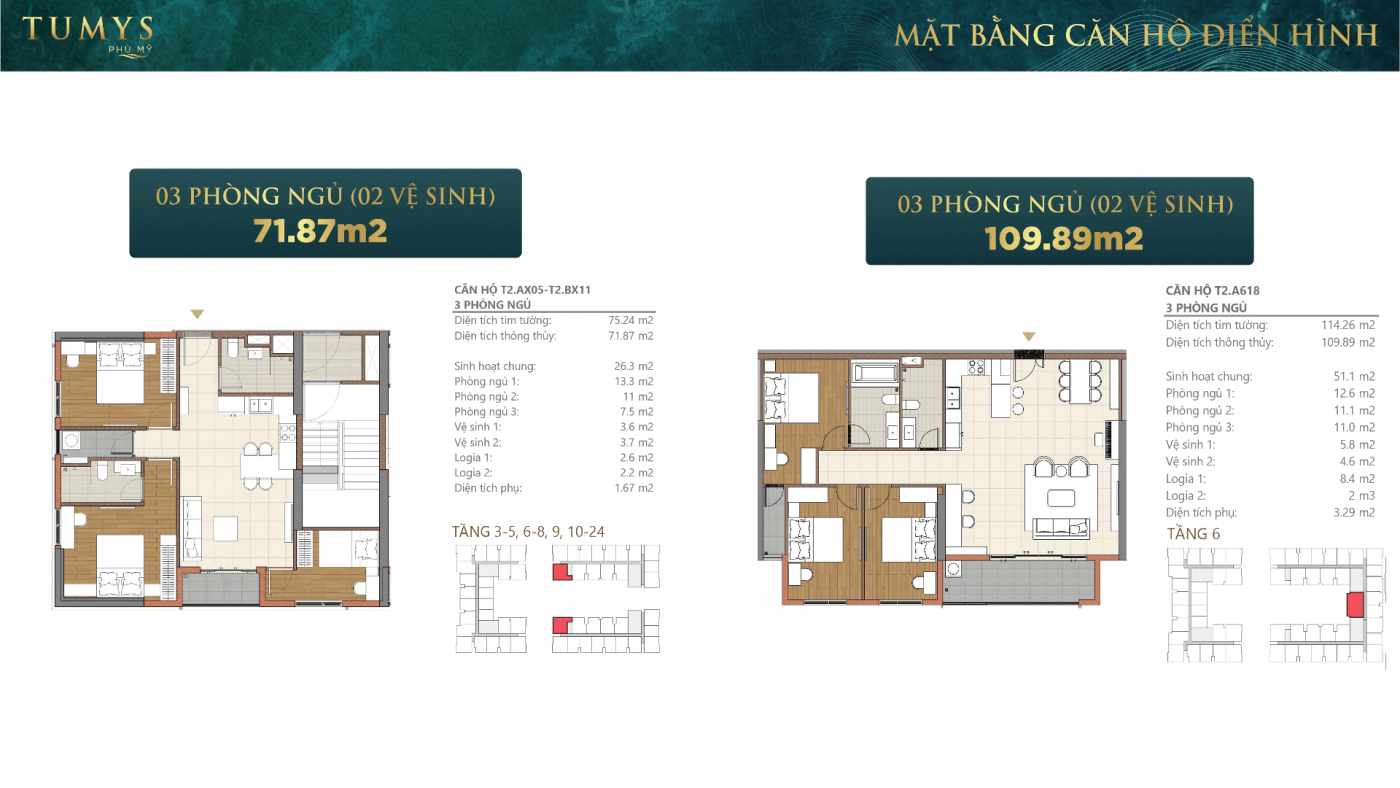 Các căn nhà được thiết kế phù hợp với nhiều đối tượng từ gia đình trẻ, cá nhân hay hộ gia đình đông người. Mặt bằng của Tumys bao gồm 3 dòng sản phẩm đó là căn hộ 1 phòng ngủ, 2 phòng ngủ và 3 phòng ngủ.