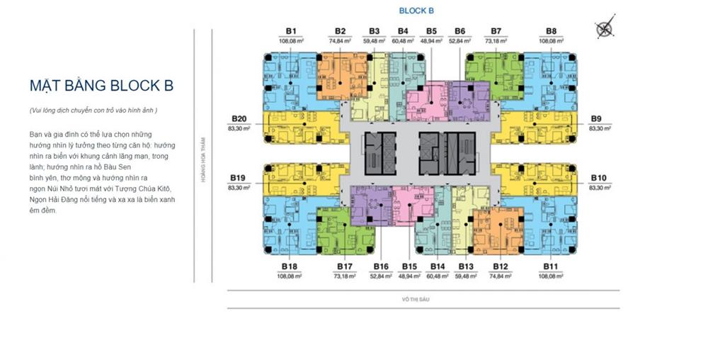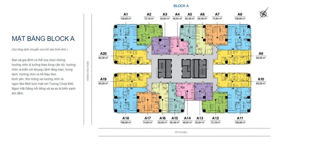 Từ cả hai Block đều có view nhìn ra biển xanh trong lành, Hồ Bầu Sen thơ mộng cực kì đẹp về đêm. Ngoài ra bạn cũng có thể nhìn thấy tượng chúa Kito cũng như hình ảnh ngọn hải đăng ở xa xa.